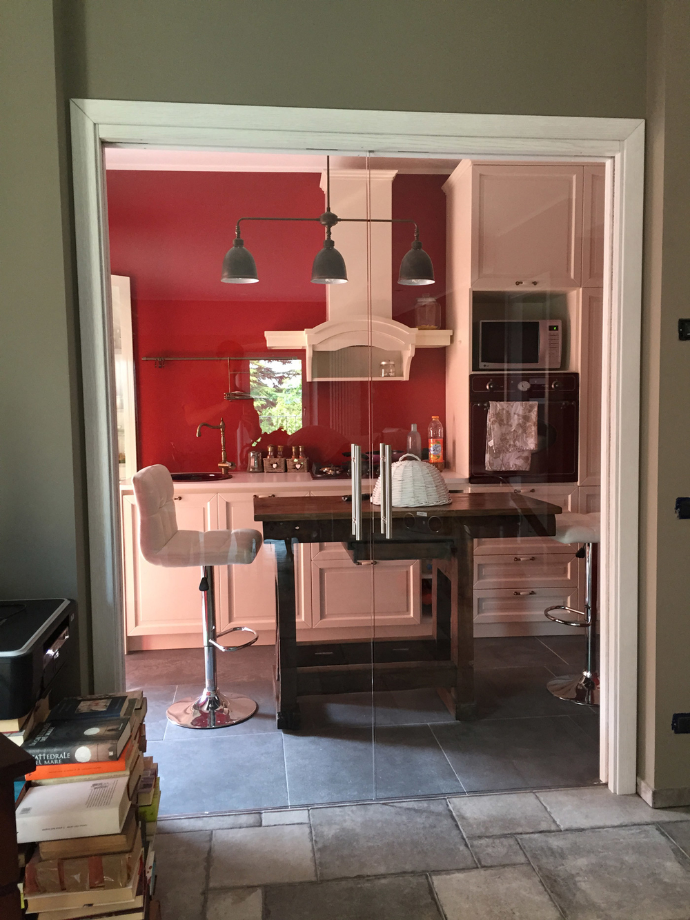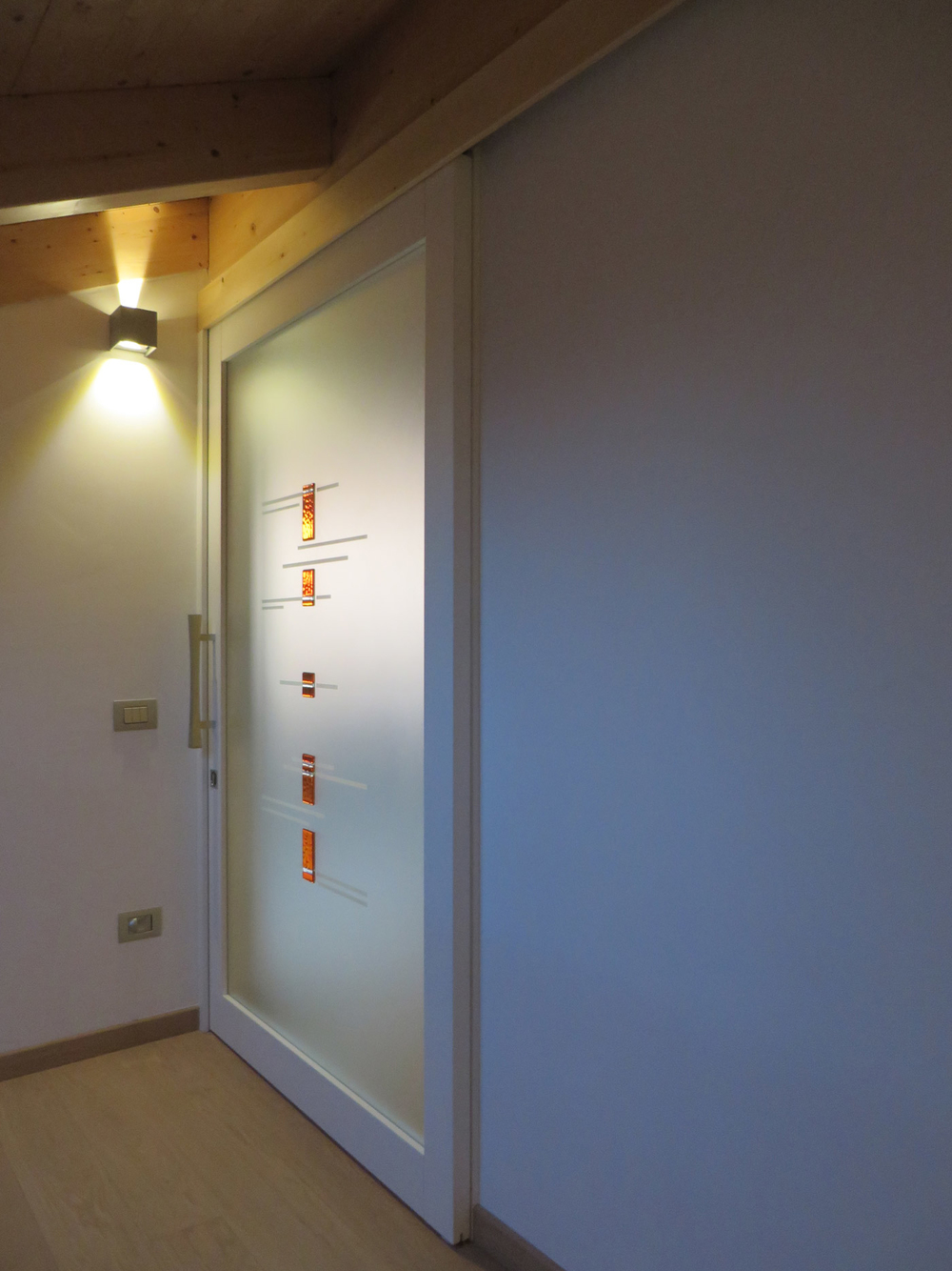 Porta Scorrevole Esterno Muro Vetro Decorato Inserti Murano